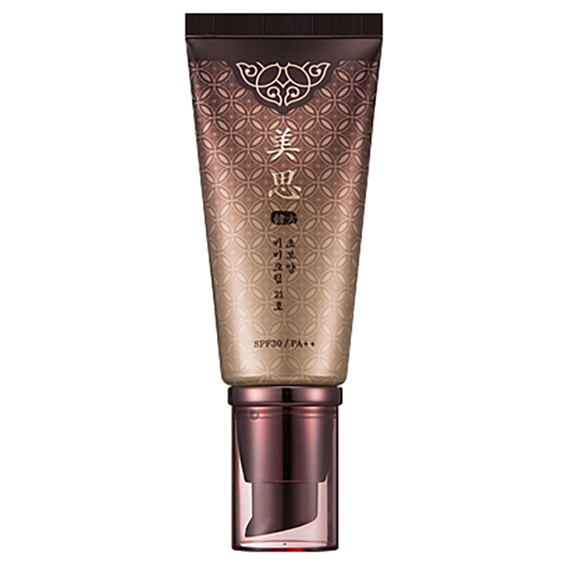 Cho Bo Yang BB Cream SPF/PA++ No 17 - Krem BB. Krem koloryzujący wzbogacony o ziołowe składniki. Pozostawia skórę gładką i promienną. Stworzony został z myślą o skórach dojrzałych. Ma działanie przeciwzmarszczkowe i rozświetlające, a także chroni skórę przed promieniowaniem ultrafioletowym. Orientalna receptura, w skład której wchodzą dziki żeń- szeń, czyste złoto oraz wyciąg z poroża jelenia zapobiega powstawaniu drobnych zmarszczek i linii. Opatentowane ekstrakty roślinne z korzenia Asparagus Lusidus, z Podbiału Pospolitego i Laminarii Japońskiej utrzymują skórę w zdrowiu i dobrej kondycji. Naturalny kompleks ziół, do którego wliczają się Storczyk Naziemny (Japoński) oraz liście Pachnotki i Jeżówki Purpurowej wykazuje silne działanie przeciwrodnikowe.