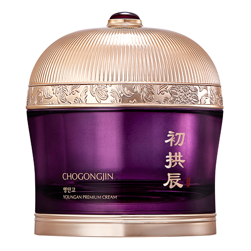 Cho Gong Jin Premium Cream - Krem do masażu twarzy. Kosmetyk stworzony został z myślą o skórach dojrzałych, które utrąciły swoją jędrność i elastyczność. Krem posiada wyjątkowo lekką konsystencję, która pod wpływem ciepła naszej skóry, delikatnie się w nią wtapia. Swoje wyjątkowe działanie zawdzięcza składnikom aktywnym pochodzącym z ziołowego wywary na bazie receptury Gongjinbichaekdan. Zawiera ona skoncentrowany ekstrakt z czerwonego oraz czarnego żeń-szenia, które zapewniają skuteczną ochronę skórze wrażliwej. W kremie odnaleźć możemy też ekstrakt z kwiatu lotosu wykazujący działanie oczyszczające a dzięki zawartości licznych antyoksydantów również przeciwstarzeniowe. Kombinacja ziół Ru-Trogen, Gonjindan, Phellinus Linetus zapewnia skórze odpowiedni poziom nawilżenia, silnie ujędrnia, odżywia i nadaje wyjątkowego blasku. Po zastosowaniu cera odzyskuje swoją elastyczność, staje się promienna i wypoczęta