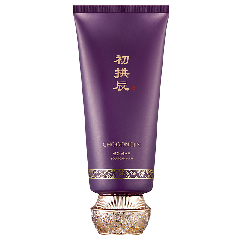 Cho Gong Jin Youngan Mask - Ujędrniająca maseczka całonocna. Kosmetyk dedykowany jest dla osób posiadających skórę dojrzałą, która utraciła swoją jędrność. Swoje skuteczne działanie przeciwstarzeniowe zawdzięcza zawartości ekstraktu z żeń-szenia oraz opatentowanemu kompleksowi Gongjinhwangjedan™. Składniki te wykazują silne działanie odżywiające oraz rewitalizujące skórę, a dzięki wysokiej zawartości antyoksydantów, chronią ją przed szkodliwym działaniem wolnych rodników. Zawarty w składzie maski kwas hialuronowy zapewnia odpowiedni poziom nawilżenia przez długi czas. Po zastosowaniu skóra staje się wyraźnie wygładzona, nawilżona i promienna.