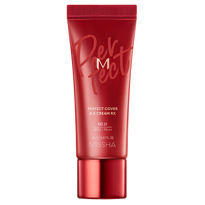 M Perfect Cover BB Cream RX No.21 - Krem BB z filtrem przeciwsłonecznym SPF42/PA+++. To wielozadaniowy produkt, stworzony z myślą o skórach z oznakami starzenia. Krem nie tylko pozwala nam na osiągniecie naturalnego efektu makijażowego o intensywnym stopniu krycia, ale i zapewnia działanie przeciwzmarszczkowe. Dzięki zawartości filtrów przeciwsłonecznych o wysokim faktorze - SPF 42, skutecznie chroni naszą skórę przed promieniowaniem UV, które stanowi jedną z podstawowych przyczyn fotostarzenia. Kosmetyk posiada lekką, nie bieląca formułę, która łatwo się blenduje nie powodując powstania efektu maski. W jego składzie znajdziemy substancje takie jak ceramidy i kwas hialuronowy, które zapewniają skórze odpowiedni poziom nawilżenia przez długi czas oraz dogłębnie ją odżywiają. Dodatek peptydów i kolagenu wykazuje działanie wzmacniające oraz widocznie wygładza. Po zastosowaniu cera staje się promienna, zmarszczki zostają zniwelowane a skóra wygląda na zdrową i wypoczętą.