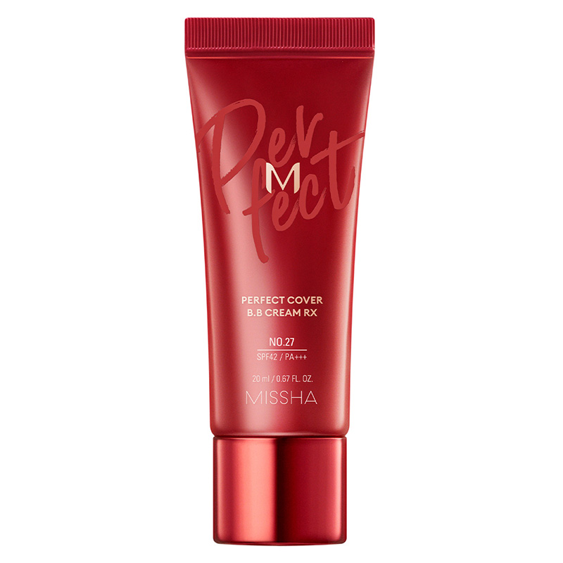M Perfect Cover BB Cream RX No.27 - Krem BB z filtrem przeciwsłonecznym SPF42/PA+++. To wielozadaniowy produkt, stworzony z myślą o skórach z oznakami starzenia. Krem nie tylko pozwala nam na osiągniecie naturalnego efektu makijażowego o intensywnym stopniu krycia, ale i zapewnia działanie przeciwzmarszczkowe. Dzięki zawartości filtrów przeciwsłonecznych o wysokim faktorze - SPF 42, skutecznie chroni naszą skórę przed promieniowaniem UV, które stanowi jedną z podstawowych przyczyn fotostarzenia. Kosmetyk posiada lekką, nie bieląca formułę, która łatwo się blenduje nie powodując powstania efektu maski. W jego składzie znajdziemy substancje takie jak ceramidy i kwas hialuronowy, które zapewniają skórze odpowiedni poziom nawilżenia przez długi czas oraz dogłębnie ją odżywiają. Dodatek peptydów i kolagenu wykazuje działanie wzmacniające oraz widocznie wygładza. Po zastosowaniu cera staje się promienna, zmarszczki zostają zniwelowane a skóra wygląda na zdrową i wypoczętą.