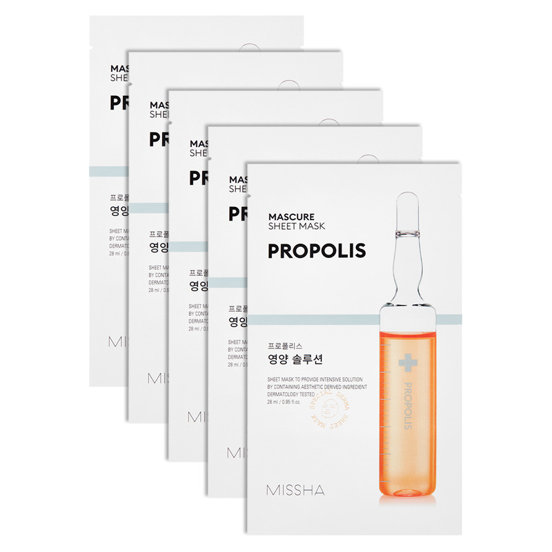 Efektem stosowania Mascure Nutrition Solution Sheet Mask Propolis jest nawilżona, elastyczna skóra, a stany zapalne wyciszone.