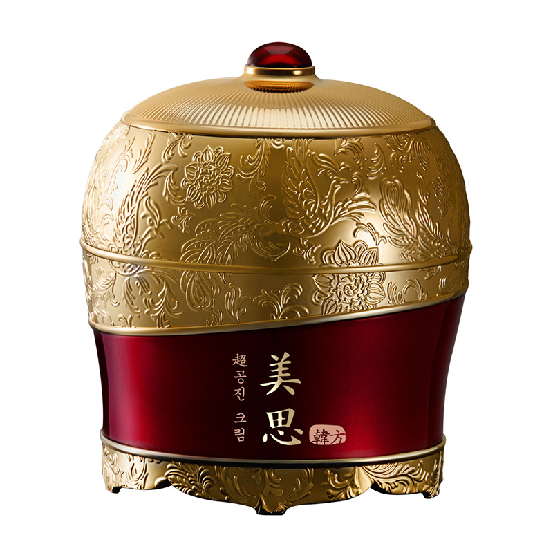 MISA Cho Gong Jin Cream - Kompletny krem przeciwzmarszczkowy. Wyjątkowa pielęgnacja skóry starzejącej się oparta na niezwykłym kompleksie orientalnych ziół. Z biegiem lat, ze względu na działanie szkodliwych czynników zewnętrznych skóra traci swój młodzieńczy wygląd. Odpowiednia pielęgnacja pozwala spowolnić proces starzenia oraz zapewnić skórze jędrność i młody wygląd na dłużej. Ziołowy wywar z czarnego żeń-szenia oraz kwiatu Rehmannia glutinosa dostarcza skórze niezbędne witaminy i minerały, które gwarantują jej piękny, zdrowy wygląd. Kwiat lotosu ze względu na swoje właściwości antyoksydacyjne spowalnia proces starzenia. Skóra jest gładka oraz jędrna ze względu na zawartość takich składników jak Gonjindan oraz Phellinus Linetus. Niezwykła pielęgnacja pozwala nadać skórze witalności oraz gwarantuje jej zdrowy blask i jędrność na dłużej!