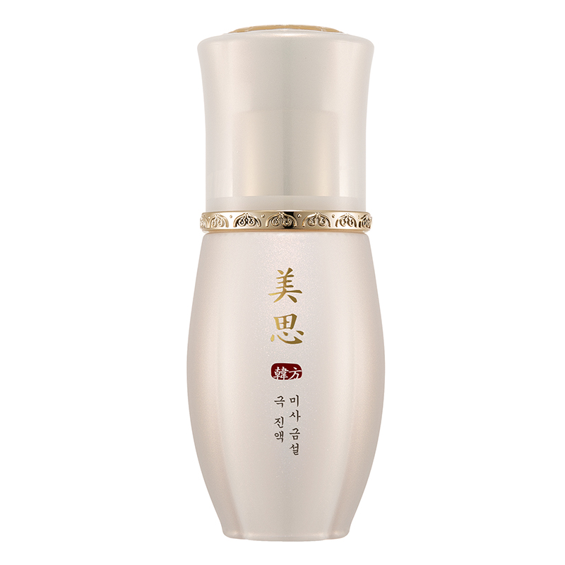 MISA Geum Sul Rejuvenating Essence - Esencja nawilżająca, ujędrniająca i odmładzająca. Esencja przeznaczona dla każdego typu skóry wymagającej działania przeciwstarzeniowego. Zawiera w swoim składzie unikalne składniki takie jak ekstrakt z dzikiego żeń-szenia, który działa jak silny antyoksydant, dzięki czemu wymiata z powierzchni skóry zanieczyszczenia oraz ekstrakt ze sfermentowanego grzyba Reishi , który ma zbawienny wpływ na rewitalizację skóry oraz spowalnia w skórze procesy starzenia, dogłębnie nawadnia skórę, a czyste złoto pobudza syntezę kolagenu i elastyny. Sprawia iż skóra staje się gładka, napięta, pozbawiona plam i przebarwień. Nie zawiera w swoim składzie parabenów, sztucznych barwników, GMO, triklosanu oraz olejów mineralnych.