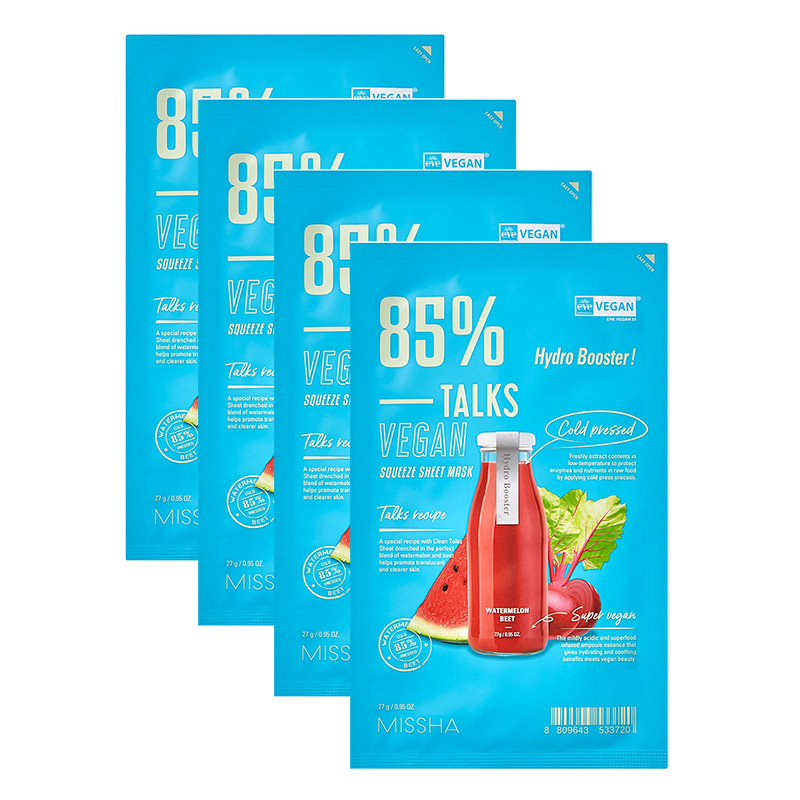 Po zastosowaniu maski Talks Vegan Squeeze Sheet Mask Hydro Booster skóra pozostaje natychmiastowo nawilżona, a uczucie ściągnięcia zredukowane.