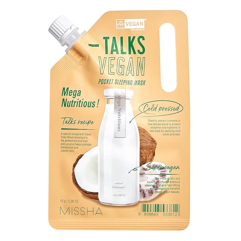 Maska Talks Vegan Squeeze Sheet Mask Mega Nutritious redukuje uczucie ściągnięcia związane z suchością skóry i pozostawia uczucie komfortu.