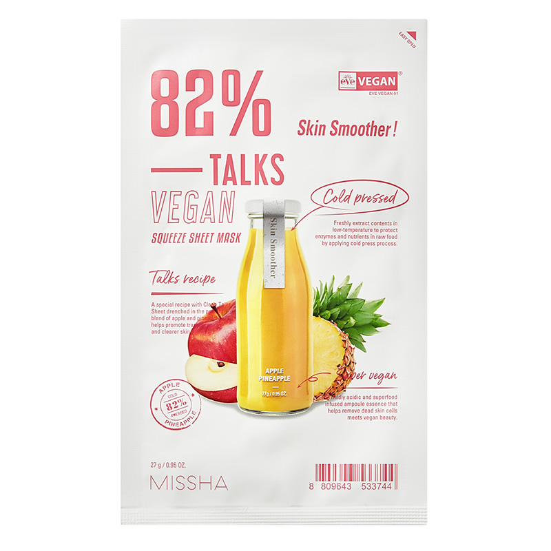 Efekty zastosowania maski Talks Vegan Squeeze Sheet Mask Skin Smoother widoczne są już po jej pierwszym użyciu.