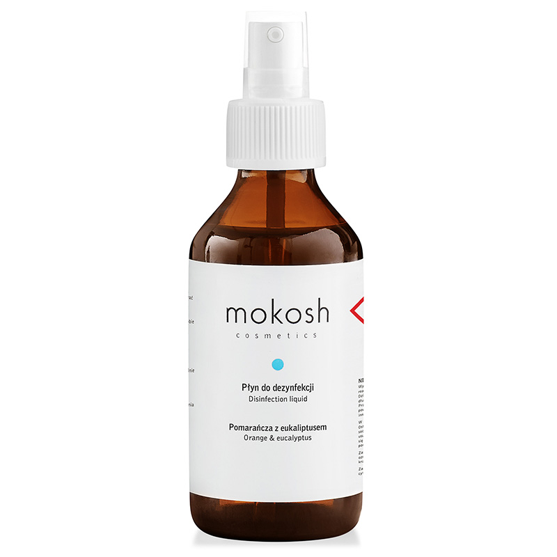 Disinfection Liquid - Płyn do dezynfekcji pomarańcza z eukaliptusem. Środek do dezynfekcji skóry rąk oraz powierzchni nie mających bezpośredniego kontaktu z pokarmami. Płyn ma działanie bakteriobójcze, grzybobójcze i wirusobójcze. Dodatkowo produkt zawiera kompozycję olejków eukaliptusowego, pomarańczowego oraz Ylang Ylang pozostawiając ziołowo-cytrusowy i przyjemny zapach. Produkt nie wysusza skóry.