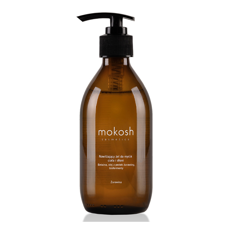 Mokosh Nawilżający Żel do Mycia Ciała i Dłoni Żurawina łagodnie oczyszcza skórę i pozostawia ją miękką i nawilżoną.