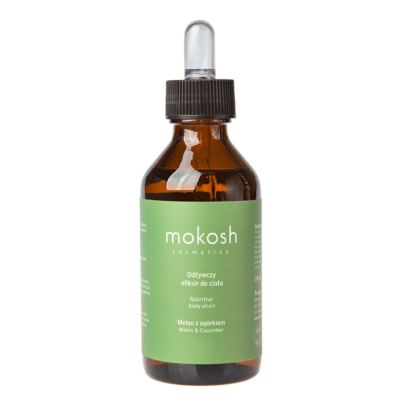 Nutritive Body Elixir Melon & Cucumber - Odżywczy eliksir do ciała - Melon z ogórkiem. Niezwykle skuteczny produkt do codziennej pielęgnacji ciała, zapewnia luksusowe odżywienie i głęboką regeneracje skóry. W składzie znajdziemy Witaminę E, olejek arganowy oraz olejek z kiełków pszenicy, które zapewniają przedłużenie młodości. Skóra ciała staje się wyjątkowo miękka, nawilżona i pachnąca oraz wygładzona dzięki działaniu oleju z pestek ogórka. Dodatkowo antyoksydanty spowalniają procesy starzeniowe, walcząc z wolnymi rodnikami. Zostaje wzmocniona bariera ochronna naskórka, dzięki której skóra może bronić się przed szkodliwym działaniem czynników zewnętrznych. Eliksir można stosować samodzielnie lub jako dodatek do peelingu. Niezwykle przyjemny zapach produktu utrzymuje się na skórze przez długi czas.