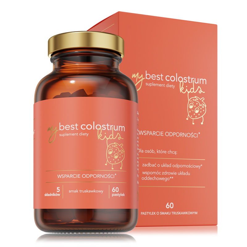 Suplement diety przeznaczony dla dzieci od 3. roku życia oraz dorosłych, będący wsparciem codziennej diety całej rodziny w colostrum. Produkt jest szczególnie polecany rodzicom, których dzieci niechętnie przyjmują tabletki lub piją oleje – pastylki do ssania mają przyjemny, owocowy smak, który dzieci chętnie akceptują.