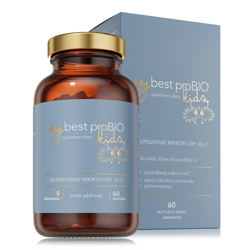 Dzięki jabłkowemu smakowi suplementacja produktem MyBestProBIO Kids staje się atrakcyjna dla najmłodszych i łatwiejsza do regularnego stosowania.