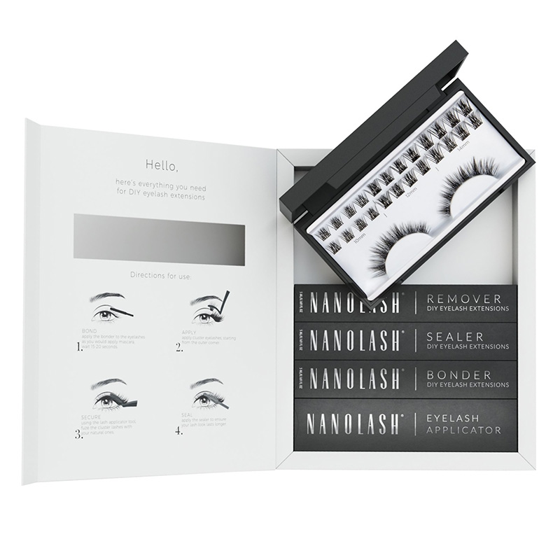 Aplikator Produkt do nakładania sztucznych rzęsSztuczne rzęsy należy chwycić za pomocą aplikatora Nanolash. Należy upewnić się, że są one stabilnie umocowane w aplikatorze, aby uniknąć przesunięcia się podczas nakładania. Patrząc w lustro, przyłożyć sztuczne rzęsy jak najbliżej naturalnej linii rzęs.