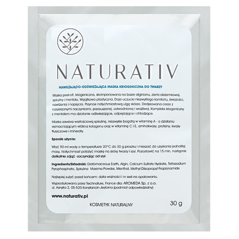 Kriogeniczna maska typu peel-of znakomicie sprawdzi się w pielęgnacji uzupełniającej dla cer naczyniowych, nadwrażliwych, z uszkodzoną barierą hydrolipidową. Stworzona została na bazie ziemi okrzemkowej, alginianu, spiruliny oraz mentolu. Jest bardzo plastyczna, dzięki czemu łatwiejsza jest także w użyciu.