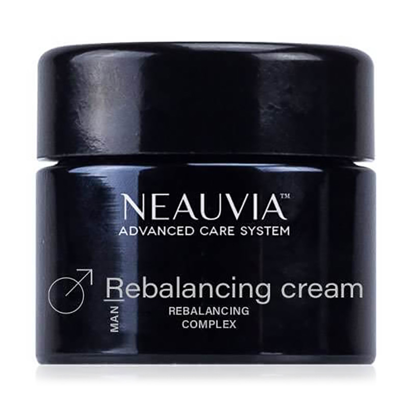 Rebalancing Cream Man - Krem dla mężczyzn. Krem regenerujący stworzony nawet dla najbardziej wymagającej, męskiej skóry. Najnowsze technologie wykorzystane przez markę Neauvia pozwoliły stworzyć krem o właściwościach ujędrniających oraz regenerujących skórę. Ze względu na zawartość peptydów komórki skóry są stymulowane do odnowy, czego efektem jest gładka i promienna skóra. Enzymy ATP dostarczają skórze energii oraz przywracają jej zdrowy koloryt. KWas hialuronowy to składnik, który nie tylko doskonale nawilży, ale również wygładzi skórę. Kompleks ceramidów, czyli składników wzmacniających barierę hydrolipidową skóry, zapobiega odwodnieniu oraz zachowuje młody wygląd skóry na dłużej. Witamina E, nazywana również „witaminą młodości” działa silnie antyoksydacyjnie- chroni skórę przed szkodliwym działaniem wolnych rodników. Skład kremu został wzmocniony o zawartość minerałów, które nadają mu czarny kolor. Poprzez rozcieranie kolor dostosowuje się całkowicie do kolorytu skóry. Lekka konsystencja pozwala na szybkie wchłonięcie kremu oraz całkowite wchłonięcie, dzięki czemu wspaniale sprawdza się w codziennej pielęgnacji.