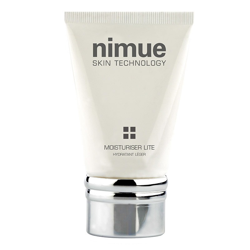 Moisturiser Lite - Krem delikatnie nawilżający do skóry interaktywnej. Produkt należący do kroku 1 pielęgnacji Nimue, przeznaczony do cery interaktywnej, z cechami uszkodzenia oraz problematycznej. Doskonale nawilża skórę, optymalizuje wydzielanie łoju oraz wizualnie poprawia stan cery. Głównym składnikiem jest kompleks kwasów owocowych Multifruit 2,5%, które bardzo delikatnie złuszczają naskórek oraz gwarantują działanie regeneracyjne. Dodatkowo formuła kremu zawiera nawilżające ekstrakty naturalne oraz Ester witaminy E oraz Ester witaminy C, które wykazują silne działanie antyoksydacyjne. Neutralizuje dzięki temu wolne rodniki, które odpowiedzialne są za szybsze starzenie się skóry. Skóra po użyciu jest doskonale nawilżone, staje się miękka i gładka w dotyku. Dzięki regulacji sebum pozbywamy się efektu świecenia. Produkt posiada pH4,5.