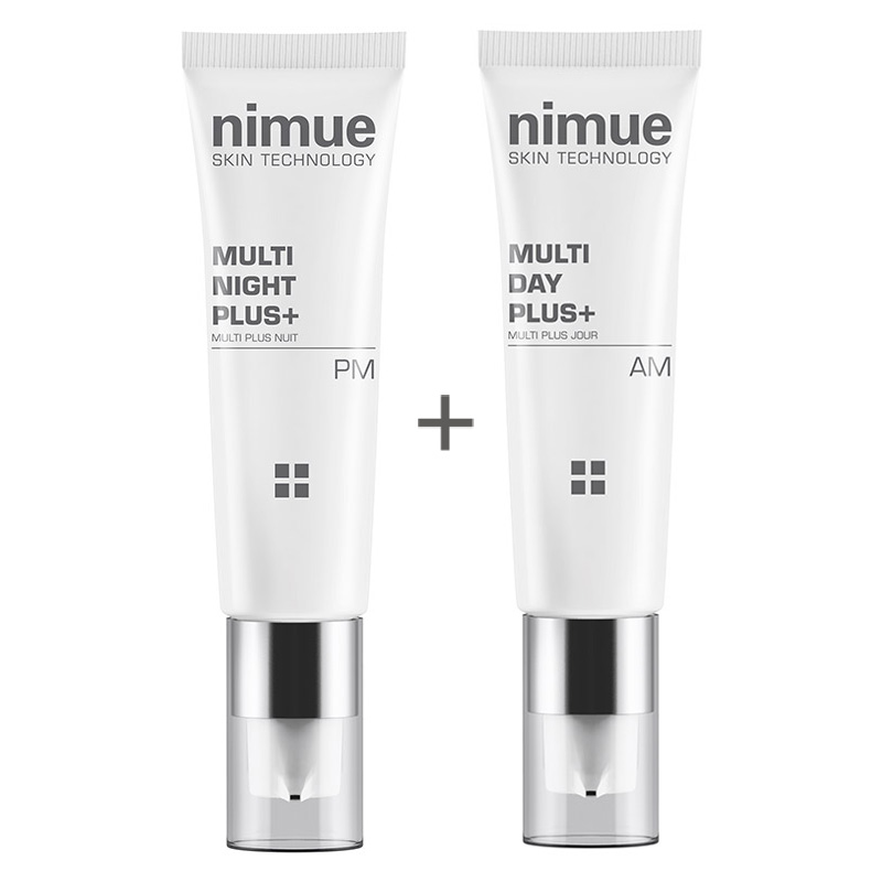 Multi Day Plus+ Tube Krem odmładzający do skóry dojrzałej na dzień w tubieMulti Day Plus+ Tube - Krem odmładzający do skóry dojrzałej na dzień w tubie. Produkt należący do kroku 1 pielęgnacji Nimue, przeznaczony do cery uszkodzonej przez wpływ środowiska zewnętrznego. Doskonale sprawdzi się w przypadku przesuszeń oraz uczucia dyskomfortu spowodowanego ściągnięciem skóry. Idealna pielęgnacja podczas miesięcy zimowych. Krem do stosowania na dzień, posiada formułę odmładzającą oraz odnawiającą uszkodzenia. Redukuje objawy suchości, zmarszczki oraz poprawia jędrność skóry. W składzie produktu znajdziemy kompleks amfoteryczny z trójskładnikową kompozycją kwasów AHA 0,5% (kwas glikolowy, cytrynowy, mlekowy), które wspomagają produkcję kolagenu w wyniku czego skóra staje się wzmocniona i jędrna. Komórki macierzyste oraz białko sojowe mają działanie odmładzające poprzez naprawę DNA. Wspomagająco w kremie zawarte zostały antyoksydanty i substancje nawilżające: Witamina A, C, E, Kwas hialuronowy, Izomerat sacharydowy, Kompleks nawilżający oraz Ekstrakt z korzenia cykorii, który odbudowuję barierę ochronną naskórka. Skóra staje się wygładzona, miękka i wzmocniona, a zmarszczki wypełnione. Krem chroni skórę przed nadmierną ucieczką wody z wnętrza oraz przywraca komfort skóry. Regularne stosowanie zwiększa jędrność i elastyczność skóry oraz spłyca zmarszczki.