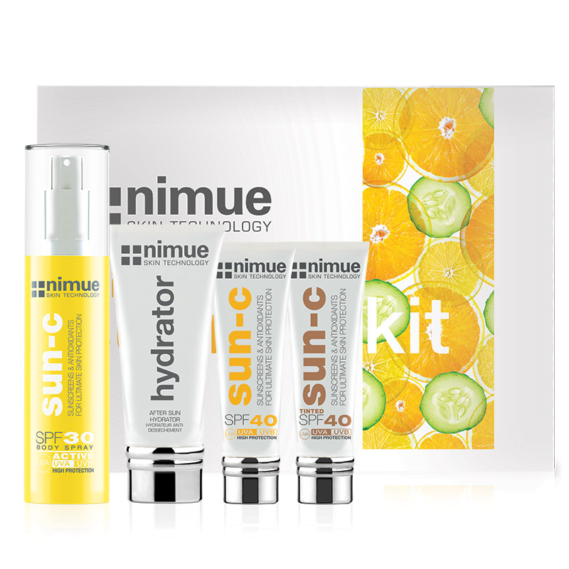 Sun C Sunscreen SPF 40 Krem przeciwsłonecznyProdukt należący do kroku 1 pielęgnacji Nimue, rekomendowany do cery z cechami uszkodzenia, hiperpigmentacyjnej, problematycznej oraz interaktywnej. Posiada lekką, nietłustą konsystencję, która doskonale chroni skórę przed szkodliwym działaniem promieniowania słonecznego. Formuła produktu posiada filtry zarówno UVA, jak i UVB oraz składniki przeciwstarzeniowe i pielęgnacyjne. Dzięki temu oprócz ochrony gwarantuje nawilżenie oraz odżywienie skóry.