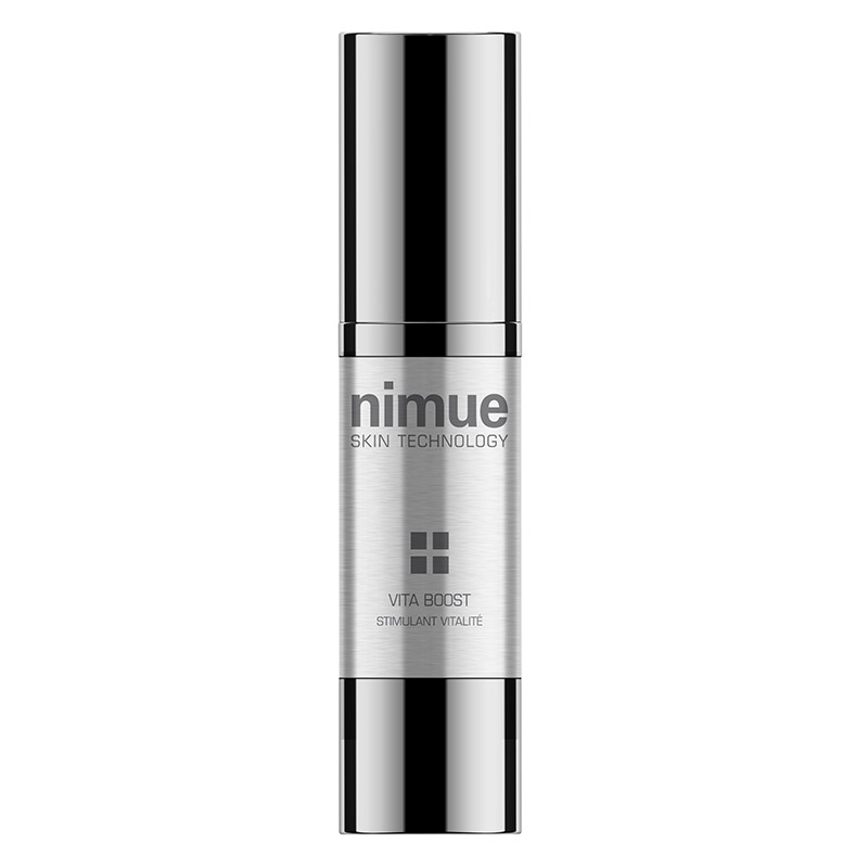 Vita Boost - Serum napinające na okolice oczu i ust. Produkt należy do produktów uzupełniających pielęgnacji Nimue. Rekomendowany jest dla cery z cechami uszkodzenia oraz z widocznymi oznakami starzenia. Doskonale pielęgnuje delikatne okolice oczu oraz ust. Skóra staje się bardziej napięta i zrewitalizowana. Formuła zawiera składniki zmniejszające widoczność zmarszczek oraz dostarczające wysokiej dawki nawilżenia. Dodatkowo w składzie znajdziemy witaminy A, C i E gwarantujące działanie naprawcze oraz antyoksydacyjne, które opóźniają procesy starzeniowe. Kwasy tłuszczowe uzupełniają poziom lipidów oraz nawilżają skórę, a trójpeptyd 1 zapobiega procesowi glikacji. Skóra staje się wygładzona, odmłodzona, a zmarszczki spłycone. Produkt dzięki cząsteczkom odbijającym światło upiększa skórę.
