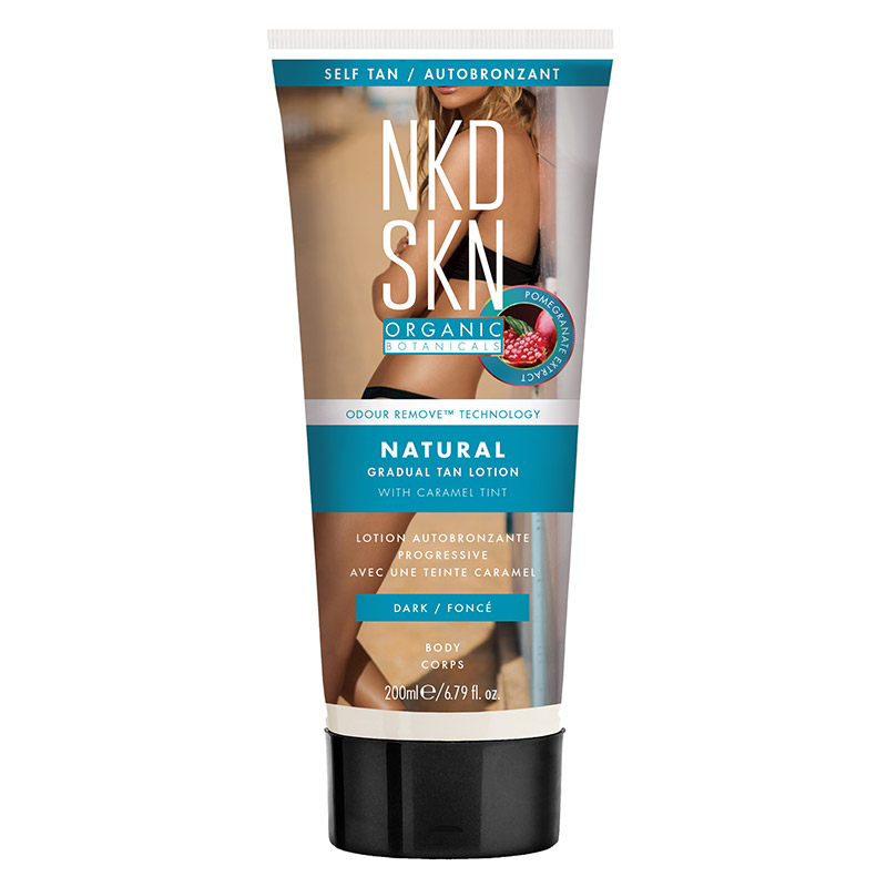 Natural Gradual Tan Lotion With Caramel Tint Dark - Lotion samoopalający - odcień Dark. Ekskluzywny produkt samoopalający, nie tylko nadaje skórze naturalnej, subtelnej opalenizny, ale również działa pielęgnująco na skórę całego ciała. Produkt nie pozostawia na skórze smug oraz zacieków oraz jest bardzo łatwy i szybki w nakładaniu. Lotion nie zawiera nieprzyjemnego zapachu, dzięki zastosowaniu technologii Odour Remove™ , który często towarzyszy produktom samoopalającym, dzięki czemu komfort stosowania zostaje podwyższony. Efektem stosowania produktu jest nawilżona skóra oraz uwodzicielska, natychmiastowa opalenizna, która utrzymuje się do 7 dni. Czynnikami pielęgnującymi są Aloe Vera, Maliny oraz Granat. Dodatkowo dostarczają skórze dużej dawki antyoksydantów oraz ukojenia.