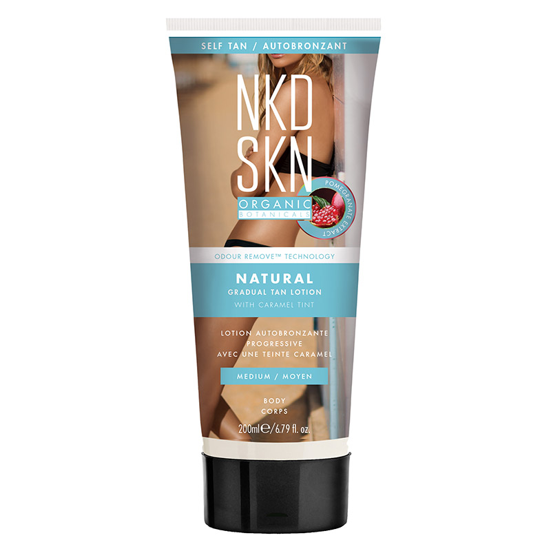 Natural Gradual Tan Lotion With Caramel Tint Medium - Lotion samoopalający - odcień Medium. Ekskluzywny produkt samoopalający, nie tylko nadaje skórze naturalnej, subtelnej opalenizny, ale również działa pielęgnująco na skórę całego ciała. Produkt nie pozostawia na skórze smug oraz zacieków oraz jest bardzo łatwy i szybki w nakładaniu. Lotion nie zawiera nieprzyjemnego zapachu, dzięki zastosowaniu technologii Odour Remove™ , który często towarzyszy produktom samoopalającym, dzięki czemu komfort stosowania zostaje podwyższony. Efektem stosowania produktu jest nawilżona skóra oraz uwodzicielska, natychmiastowa opalenizna, która utrzymuje się do 7 dni. Czynnikami pielęgnującymi są Aloe Vera, Maliny oraz Granat. Dodatkowo dostarczają skórze dużej dawki antyoksydantów oraz ukojenia.