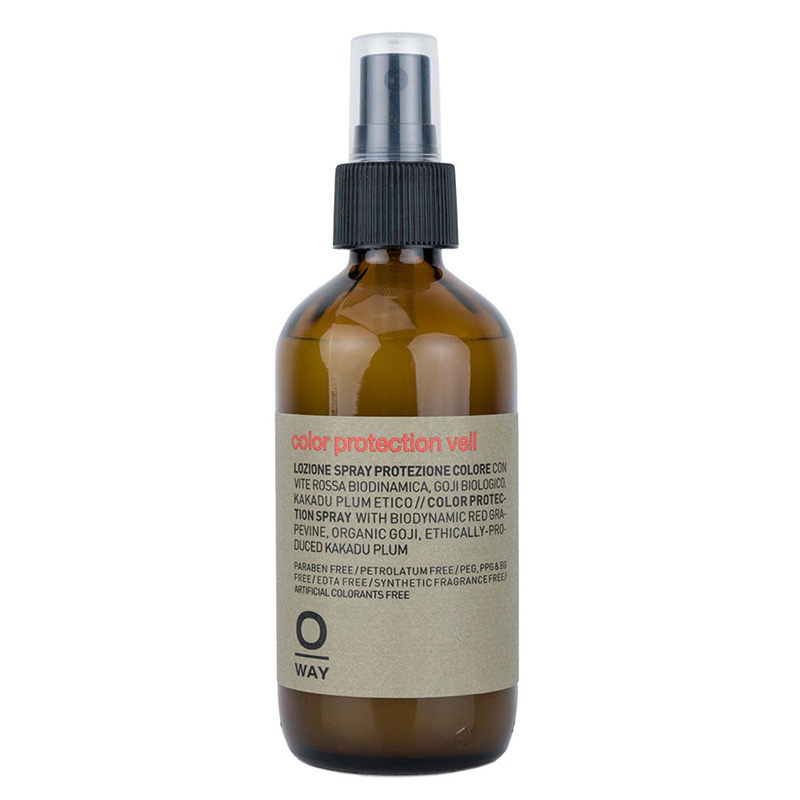 Color Protection Hair Veil - Emulsja w sprayu do farbowanych włosów. Emulsja przeznaczona do farbowanych, rozjaśnianych lub z pasemkami.Przedłuża trwałość koloru oraz chroni włosy przed stresem oksydacyjnym. Włókna włosów zostają wygładzone co nadaje im połysk oraz zapewniając odbijanie światła od ich powierzchni.