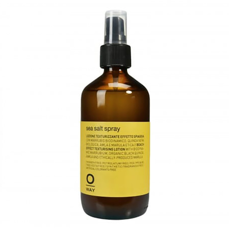 Sea Salt Spray - Mgiełka wygładzająca. Spray z zawartością soli morskiej. Rozdziela pasma włosów. Nadaje im lekko "potargany" charakter i ''plażowy look''. Poza funkcją stylizacyjną, wykazuje także działanie pielęgnacyjne. Jest wzbogacona o marrubium, który zwiększa naturalną odporność na działanie promieni UV. Innym cennym składnikiem jest komosa ryżowa działająca odżywczo i osłonnie na włókna włosów. Pozostałe składniki amla i marula - działają regeneracyjnie, nawilżająco oraz nadają naturalny, zdrowy połysk.
