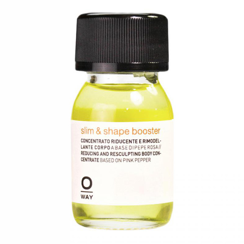 Slim and Shape Booster - Wyszczuplająco, modelujące skoncentrowane serum do ciała. Produkt zmniejsza widoczność cellulitu, ujędrnia, uelastycznia skórę. Dodatkowo zmniejsza powstawanie nowych komórek tłuszczowych, wspomaga walkę z pomarańczową skórką oraz z zatrzymywaniem się wody w organiźmie. Przy regularnym stosowaniu serum, skóra staje się zdecydowanie bardziej wygładzona, miękka i wymodelowana. Kosmetyk zawiera ryż różowy - przyprawę, która pozwala spalać tłuszcz. Serum jest idealna dla osób, które są w trakcie kuracji odchudzającej.