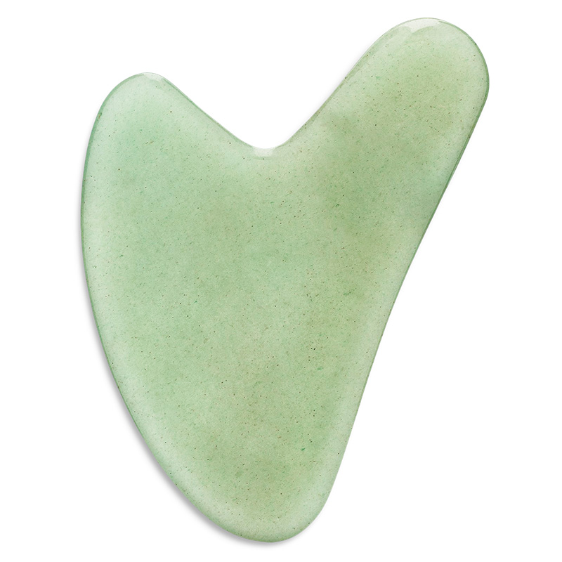Płytka do masażu twarzy oraz skóry ciała Olivia Plum Gua Sha o łagodnych, zaokrąglonych brzegach została wykonana z naturalnego jadeitu.