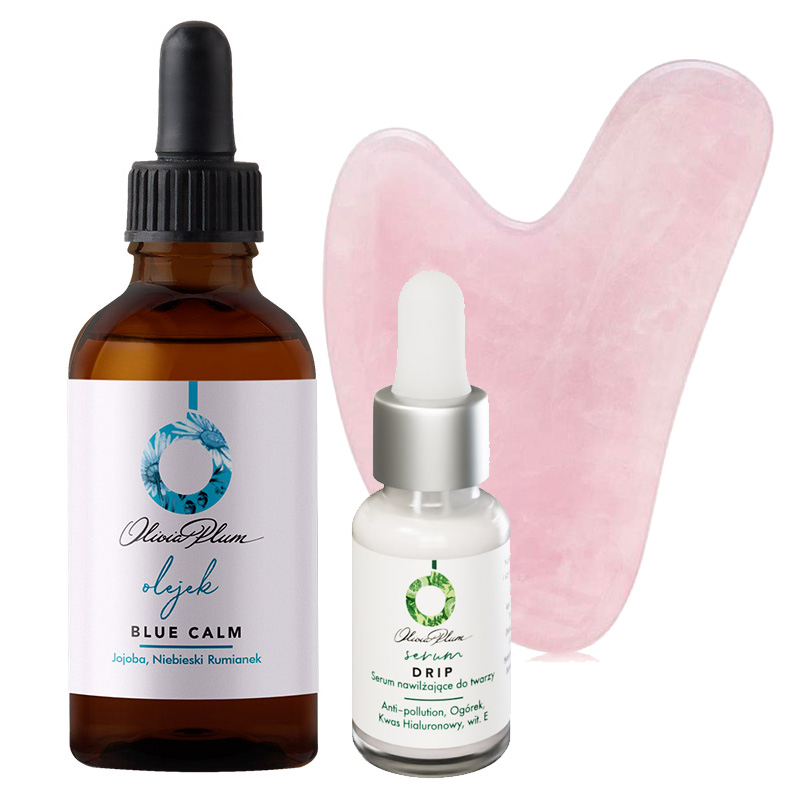 Blue Calm Oil Olejek, Jojoba i niebieski rumianekMieszanka naturalnych olejów przeznaczona do pielęgnacji każdego rodzaju skóry twarzy i szyi, szczególnie problematycznej i dojrzałej. Z powodzeniem może być również stosowana w pielęgnacji ciała. Dzięki zawartości składników podobnych do naturalnego sebum wytwarzanego przez skórę produkt ogranicza nadprodukcję łoju i problem przetłuszczania się skóry.
