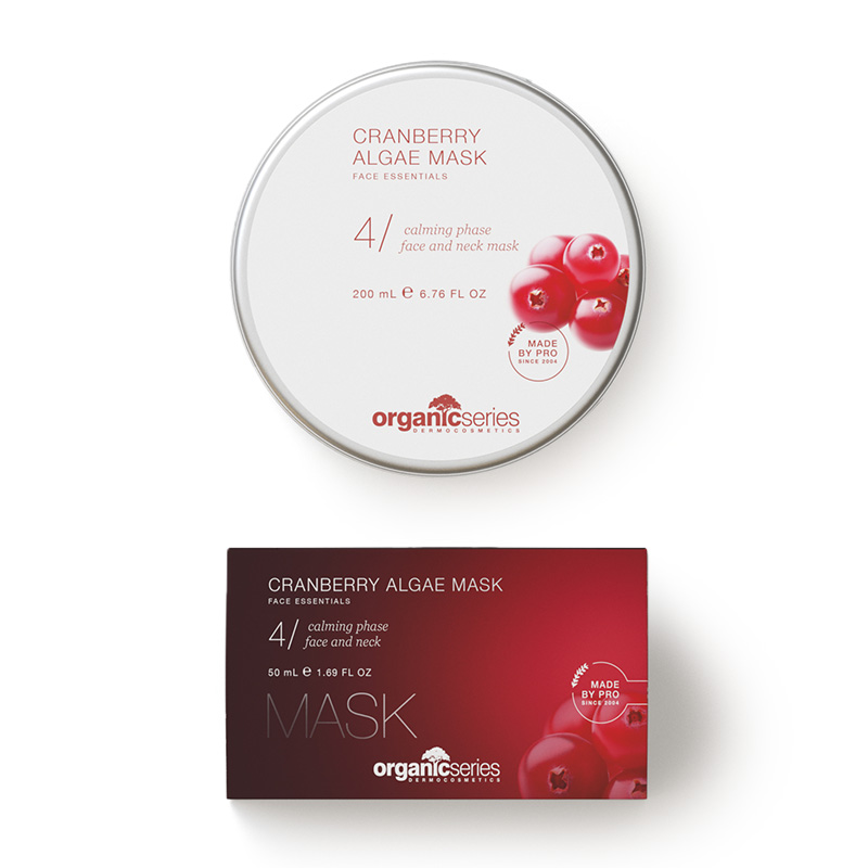 Maska powstała na bazie żurawiny, która wzmacnia naczynka krwionośne i poprawia krążenie, łagodzi rumień oraz ujędrnia. Zawiera alginat, który ma bardzo istotne znaczenie w pielęgnacji skóry. Daje tak zwany efekt okluzji, czyli tworzy warstwę filmu na skórze, który zapobiega utracie wody i jednocześnie poprawia wnikanie substancji aktywnych. Zawiera dodatkowo witaminy A, C oraz z grupy B, które poprawiają funkcjonalność skóry, przywracając jej odpowiednie pH.