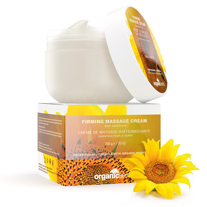 Firming Massage Cream - Krem do ciała ujędrniający. Idealny produkt do skóry dojrzałej, wymagającej odżywienia i nawilżenia. Formuła kremu bazuje na Oleju ze słonecznika i Wyciągu z otoczek ziaren łubinu, co wpływa na spowolnienie procesów starzeniowych. Składniki te wychwytują i neutralizują wolne rodniki, odpowiedzialne za szybsze starzenie się skóry. Dochodzi również do zwiększenia produkcji kolagenu, który wraz z wiekiem zmniejsza swoją ilość. Po użyciu widocznie poprawia się jakość skóry, staje się ona napięta, nawilżona i wygładzona. Produkt jest w pełni wegański.