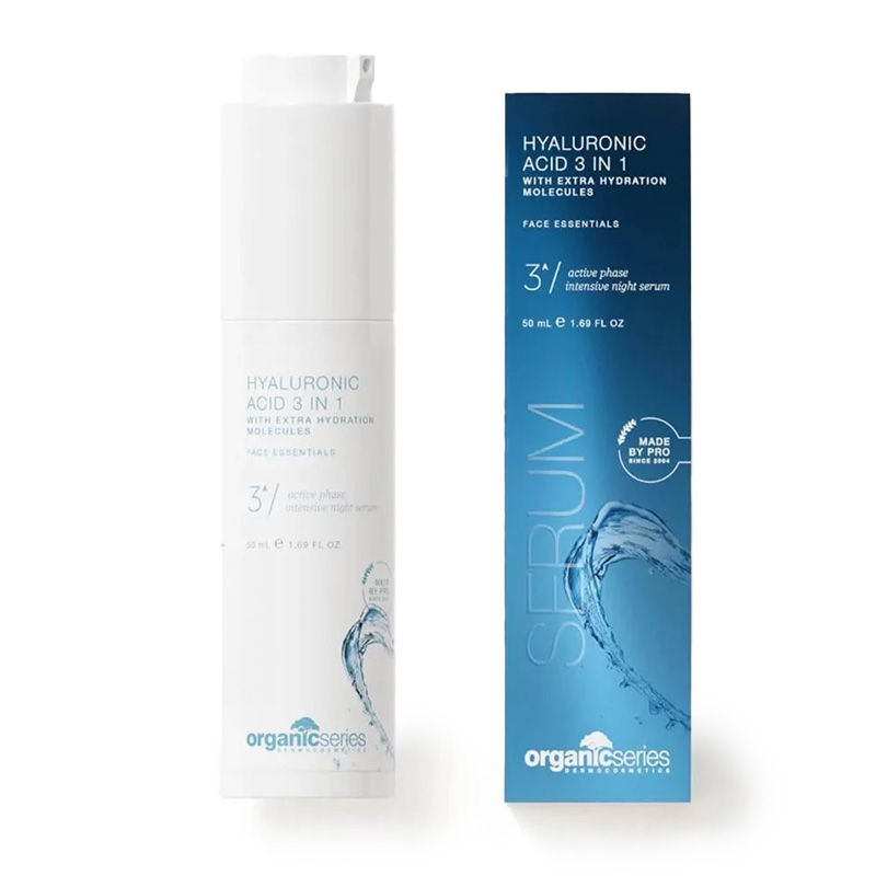Formuła została wzbogacona o inspirowany naturą kompleks biomimetyczny, który zapewnia zwiększenie nawodnienia, ale także długotrwałe efekty w postaci poprawy jędrności skóry. Regularne stosowanie Organic Series Hyaluronic Acid 3 in 1 sprawia, że zmarszczki i drobne linie są mniej widoczne, a skóra staje się bardziej elastyczna.