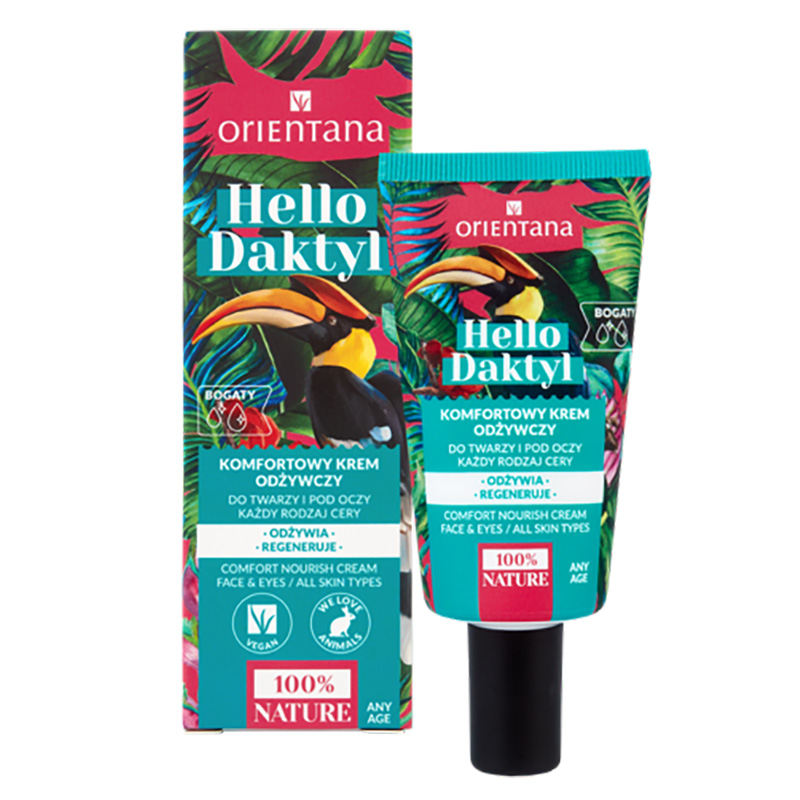 Orientana Comfort Nourish Cream jest bogactwem składników pochodzenia naturalnego jak ekstrakt z daktyla, który wykazuje działanie odżywcze i nawilżające, ekstrakt z wąkroty azjatyckiej o właściwościach poprawiających jędrność skóry, a także łagodzący pantenol. W formule zastosowano również olej sezamowy, masło mango oraz olej z otrębów ryżowych, które wpływają na właściwości barierowe skóry oraz jej naturalne procesy regeneracyjne.