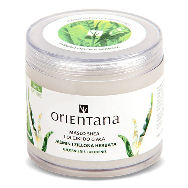 Natural Shea Butter - Naturalne masło Shea i olejki - Jaśmin i zielona herbata. Naturalne masło shea wzbogacone o masło kakaowe, mango i kokum oraz o oleje i olejki roślinne. Masło intensywnie natłuszcza, mocno odżywia skórę, ujędrnia i wygładza. Dedykowane jest do każdego typu skóry, w szczególności wymagającej poprawy jędrności i ukojenia. Konsystencja jest gęsta. Posiada kojący zapach jaśminu.