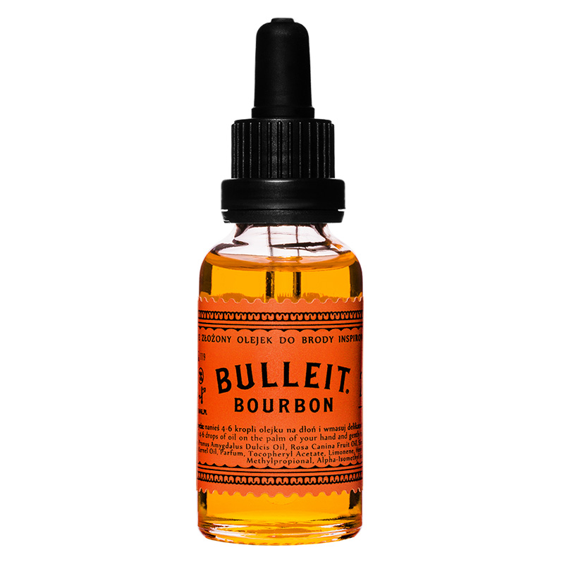 Bulleit Bourbon Beard Oil - Olejek do brody. Regenerujący olejek do męskiej brody. Głęboko regeneruje i odżywia zarost chroniąc go przy tym przed czynnikami zewnętrznymi. Produkt w składzie posiada olej arganowy, ze słodkich migdałów i jojoba które zabezpieczają i zmiękczają zarost. Przy regularnym stosowaniu olejek sprawia, że zarost staje się miękki i zadbany. Olejek posiada zapach amerykańskiego bourbonu.