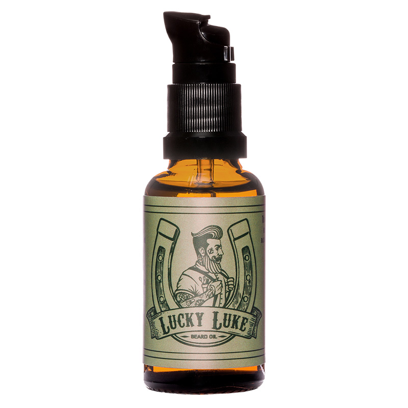 Lucky Luke Beard Oil - Olejek do brody. Regenerujący olejek do brody. Silnie odżywcza formuła oparta na naturalnych roślinnych olejach takich jak olej jojoba, olej arganowy czy ze słodkich migdałów zmiękcza zarost i chroni go przed wysuszeniem oraz niekorzystnym działaniem czynników zewnętrznych. Olejek do brody stanowi idealną pielęgnację i ochronę zarostu każdego mężczyzny. Zapach przygody z dzikiego zachodu. Nie zawiera składników pochodzenia zwierzęcego