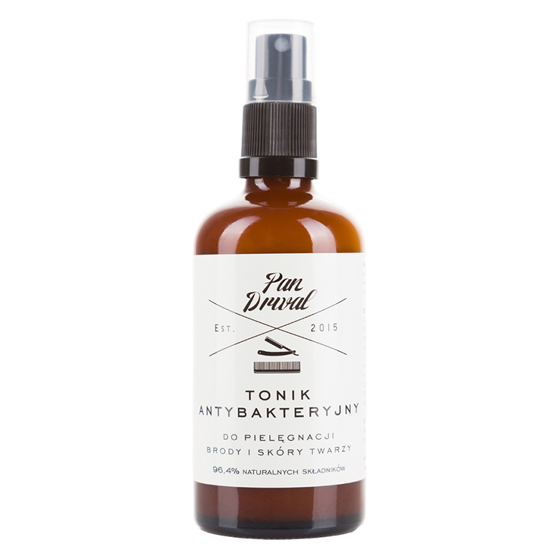 Tonic Original - Tonik antybakteryjny, do pielęgnacji brody i skóry twarzy. Tonik to niezastąpiony element pielęgnacji każdego typu skóry. Oczyszczając skórę za pomocą mydła lub żelu zaburzane jest jej naturalne pH co wiąże się ze zwiększoną podatnością na występowanie podrażnień oraz stanów zapalnych. Kompozycja składników aktywnych toniku pozwala przywrócić skórze odpowiednie pH oraz komfort. Proteiny roślinne wykorzystane w składzie toniku Pan Drwal zapobiegają przesuszeniu poprzez zatrzymywanie wody w naskórku. Proteiny są również składnikiem często wykorzystywanym w pielęgnacji włosów- przywracają ich naturalną strukturę oraz zwiększają objętość. Olej arganowy to naturalne źródło witaminy E. Jego zawartość w kosmetyku poprawia elastyczność skóry i włosów oraz doskonale nawilża i regeneruje. Olej jojoba pozostawia na powierzchni skóry delikatną powłokę ochronną, która zapobiega odwodnieniu oraz podrażnieniu. Doskonale chroni skórę i zarost przed wiatrem lub niskimi temperaturami. Przyjemny, delikatny zapach to kompozycja nut drzewa sandałowego oraz cedrowego.