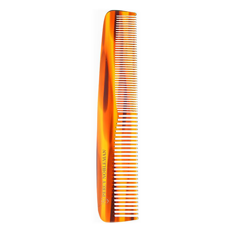 Hair Comb - Grzebień do włosów. Grzebień wykonany został z niezwykle lekkiego materiału - oktanu szylkretu. Niezbędny gadżet w kieszeni każdego gentelmena, który dba o wygląd swojej fryzury. Wymiary grzebienia do 190 mm x 39 mm, co pozwala na ułożenie każdej fryzury, która nam się wymarzy. Zaokrąglone końce grzebienia doskonale i perfekcyjnie rozprowadzają produkty do stylizacji włosów. Produkt nie podrażnia skóry głowy.