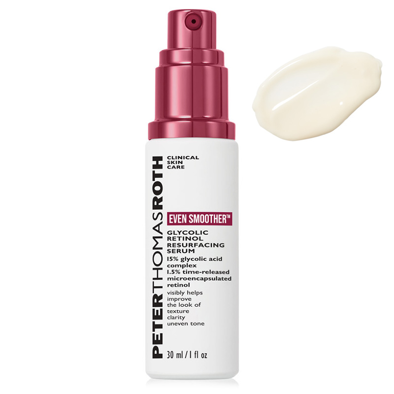 Kosmetyk Glycolic Retinol Resurfacing Serum przywraca promienny wygląd cerze, a efektem jego stosowania jest gładka skóra o ujednoliconym kolorycie i teksturze.