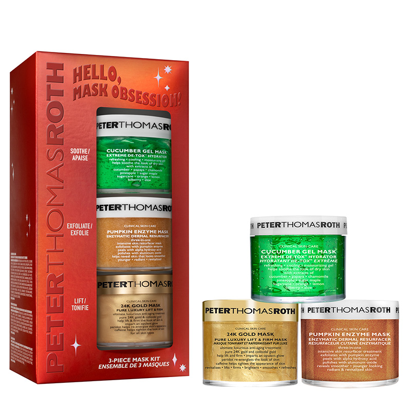 Składowa Peter Thomas Roth 24K Gold Mask Pure Luxury Lift and Firm 24-karatowa złota maska występuje w zestawie Hello Mask Obsession w zmienionej objętości.