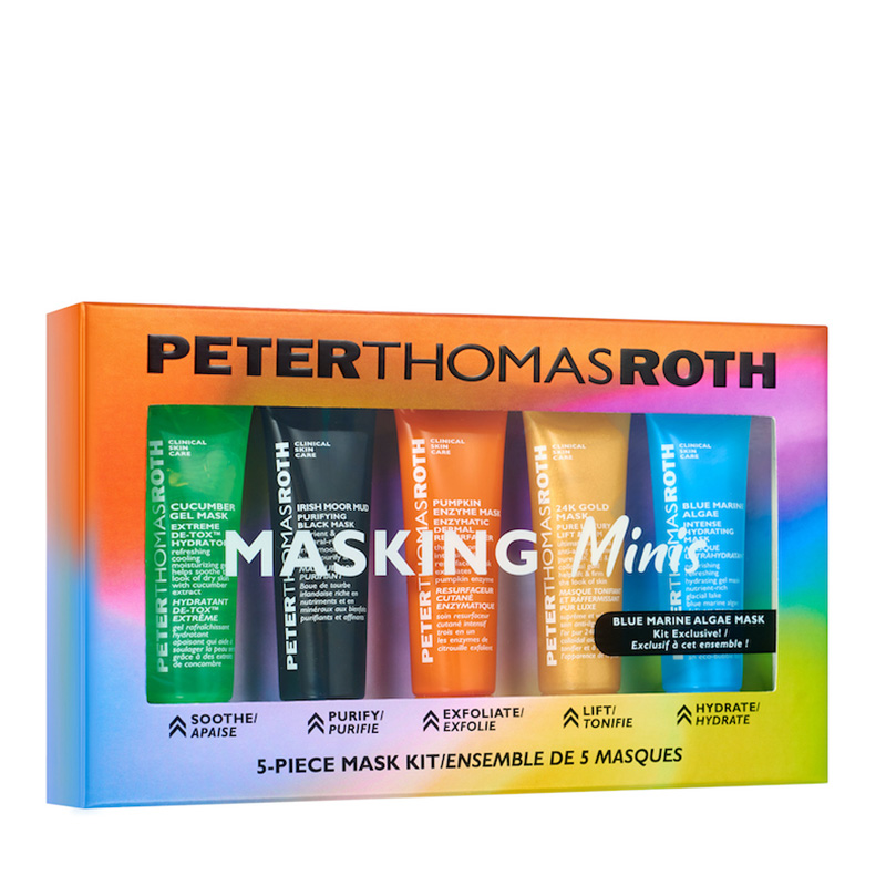 Składowa Peter Thomas Roth Blue Marine Algae Mask Intensywnie nawilżająca maska algowa występuje w zestawie Masking Minis w zmienionej objętości.