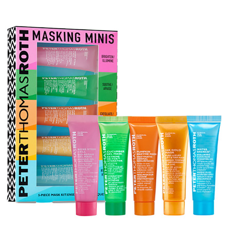 Składowa Peter Thomas Roth 24K Gold Mask Pure Luxury Lift and Firm 24-karatowa złota maska występuje w zestawie Masks Minis Holiday w zmienionej objętości.