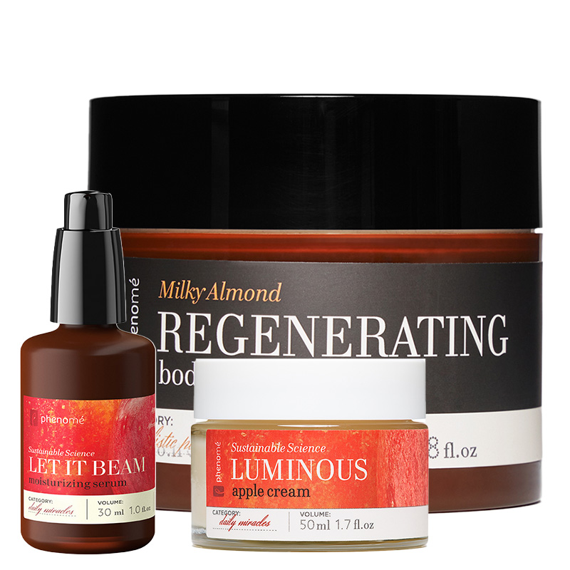 Wyciąg aloesu zwyczajnego łagodzi podrażnienia, nawilża i regeneruje. Wyciągi ze skórki cytrynowej i pomarańczowej zdecydowanie odświeżają skórę, dodając jej życia i witalności. Efektem regularnego stosowania kremu Luminous Apple Cream jest poprawa kolorytu skóry i jej wygładzenie, opóźnienie procesów starzenia i spłycenie istniejących zmarszczek.
