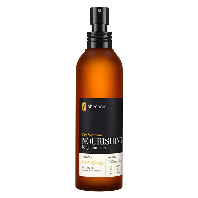 Nourishing Body Emulsion - Cukrowy balsam do ciała, w składzie którego znajdują się woda cytrynowa i hydrolat z aloesu zwyczajnego będąca bogactwem minerałów oraz witamin mających pozytywny wpływ na stan i kondycję skóry oraz działają nawilżająco, łagodząco i ochronne. Masło shea wraz z ekstraktem z młodych pędów owsa i ekstraktem z owoców noni przyspieszają regenerację podrażnień, odbudowują skórę zdecydowanie poprawiając jej elastyczność. Dzięki zawartej w kompozycji kosmetyku betainie z trzciny cukrowej oraz obecności brązowego cukru, balsam do ciała gwarantuje odpowiedni stopień nawilżenia skóry. Olej arganowy, olej makadamia i fitoskwalan wygładzają skórę dzięki jej odżywieniu i zapewnieniu odpowiedniego nawilżenia i natłuszczenia, w widoczny sposób zwiększają jej napięcie. Piękny waniliowy zapach w połączeniu z nutami kwiatowymi i cytrusowymi sprawia, że użycie cukrowego balsamu do ciała stanowi wspaniały relaks i odświeżenie zarówno ciała jak i umysłu.