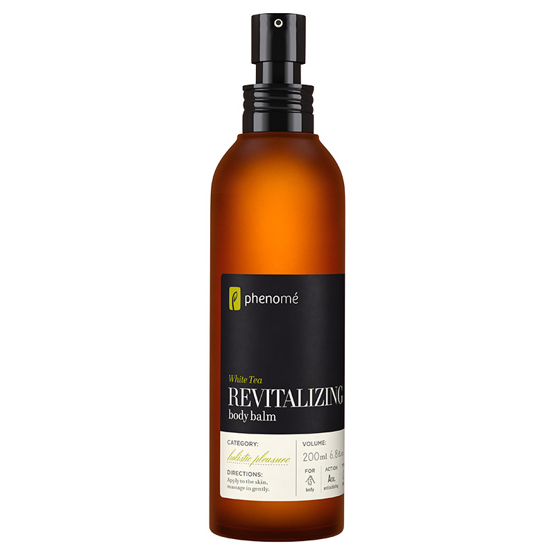 Revitalizing Body Balm Antyoksydacyjny balsam do ciała z białą herbatą i żurawiną, który w swej kompozycji zawiera hydrolat z zielonej herbaty, wodę migdałową oraz hydrolat z aloesu zwyczajnego, stanowiące bogactwo minerałów oraz witamin mających pozytywny wpływ na stan i kondycję skóry. Masło shea wraz z fitoskwalanem natłuszczają, przyspieszają regenerację podrażnień, odbudowują skórę zdecydowanie poprawiając jej elastyczność. Olej awokado i olej makadamia wygładzają skórę dzięki jej odżywieniu i zapewnieniu odpowiedniego nawilżenia i natłuszczenia, w widoczny sposób zwiększają jej napięcie. Składniki działające antyoksydacyjnie, którymi są wyciąg z białej herbaty i wyciąg z żurawiny opóźniają procesy starzenia oraz zwiększają napięcie skóry. Ekstrakt z melisy lekarskiej wykazuje działanie przeciwzapalne i relaksujące, a ekstrakt ze skórki cytryny zapewnia uczucie odświeżenia i pobudzenia skóry. Wspaniały zapach herbaty wraz z nutą białych kwiatów jednocześnie uspokaja i pobudza ciało oraz umysł.