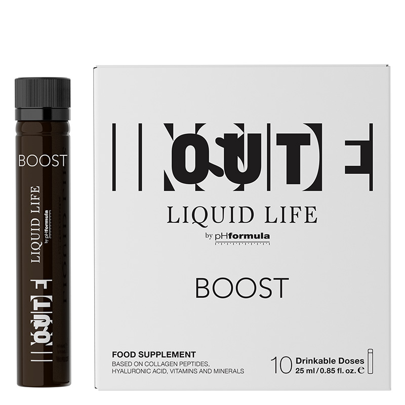 Formuła preparatu Inside Out Liquid Life Boost została wzbogacona o kwas hialuronowy oraz wodę termalną z Pirenejów, bogatą w składniki mineralne. Suplement ma płynną postać, co ułatwia jego stosowanie.