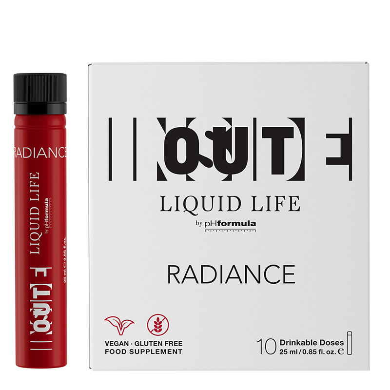 Formuła preparatu Inside Out Liquid Life Radiance zawiera również kwas hialuronowy oraz wodę termalną z Pirenejów, bogatą w minerały. Suplement ma płynną postać, co ułatwia jego stosowanie. Produkt jest odpowiedni dla wegan.