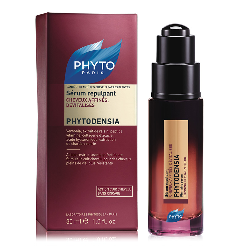 Phytodensia - Serum Serum wzmacniające. Produkt rekomendowany do delikatnych, osłabionych włosów.Dzięki połączeniu roślinnych składników aktywnych takich jak ekstrakt z Venonia i polifenoli z pestek winogron restrukturyzuje i wzmacnia skórę głowy sprzyjając porostowi włosów. Kwas hialuronowy wraz z kolagenem wypełniają ubytki we włosach, nawilżają je i intensywnie odmładzają. Serum wzmacnia globalnie włosy sprawiając, iż stają się bardziej jedwabiste, grube i wzmocnione. Serum posiada lekką, nietłustą konsystencje, dzięki czemu nie obciąża nadmiernie włosów.