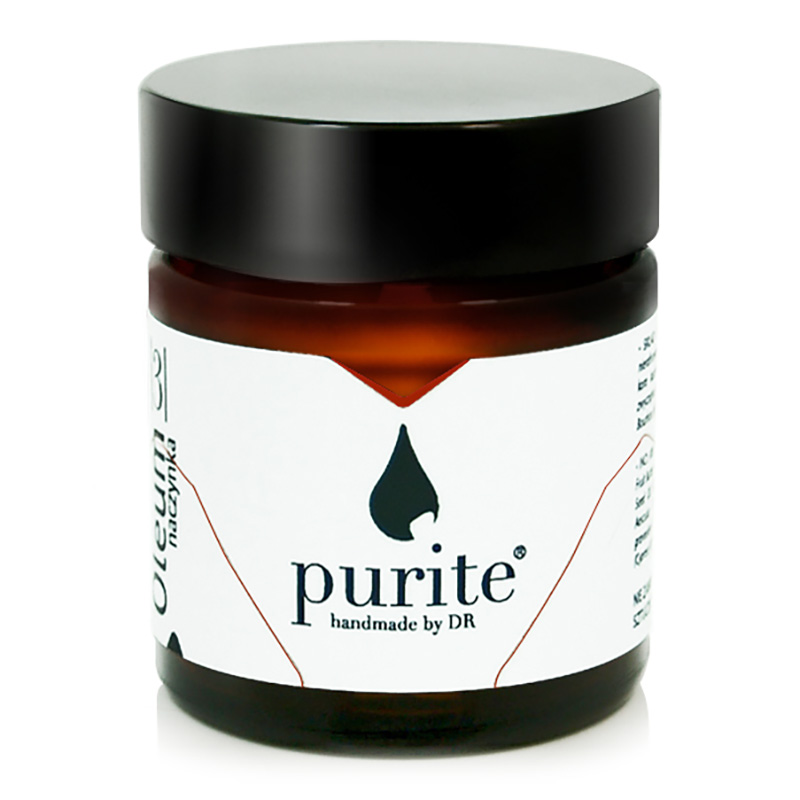Olej z pestek winogron, wosk pszczeli, nierafinowane masło shea, olej arganowy, olej jojoba, olej czarnuszkowy, kora kasztanowca, kwiaty kasztanowca, nagietek lekarski, ruta zwyczajna, nostrzyk żółty, witamina E, olejek cyprysowy, olejek geranium Bourbon, olejek z mięty pieprzowej.